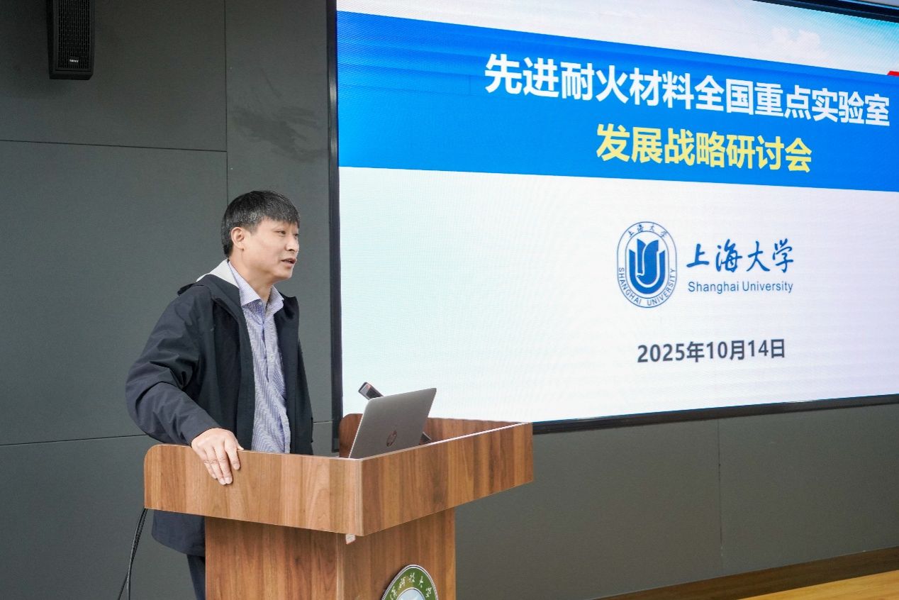 会议伊始,武汉科技大学校长吕勇和中钢集团科技创新部总经理弋鹏飞分别致辞,充分肯定实验室在推动行业进步中的作用。先进耐火材料全国重点实验室(上海)副主任王刚代表上海大学汇报了2025年第一次发展战略研讨会内容的落实情况,分享了我校在先进耐火材料研究和实验室建设方面的最新进展,邹星礼就实验室发展任务、考核指标、建设形式等方面做了进一步的补充和说明。