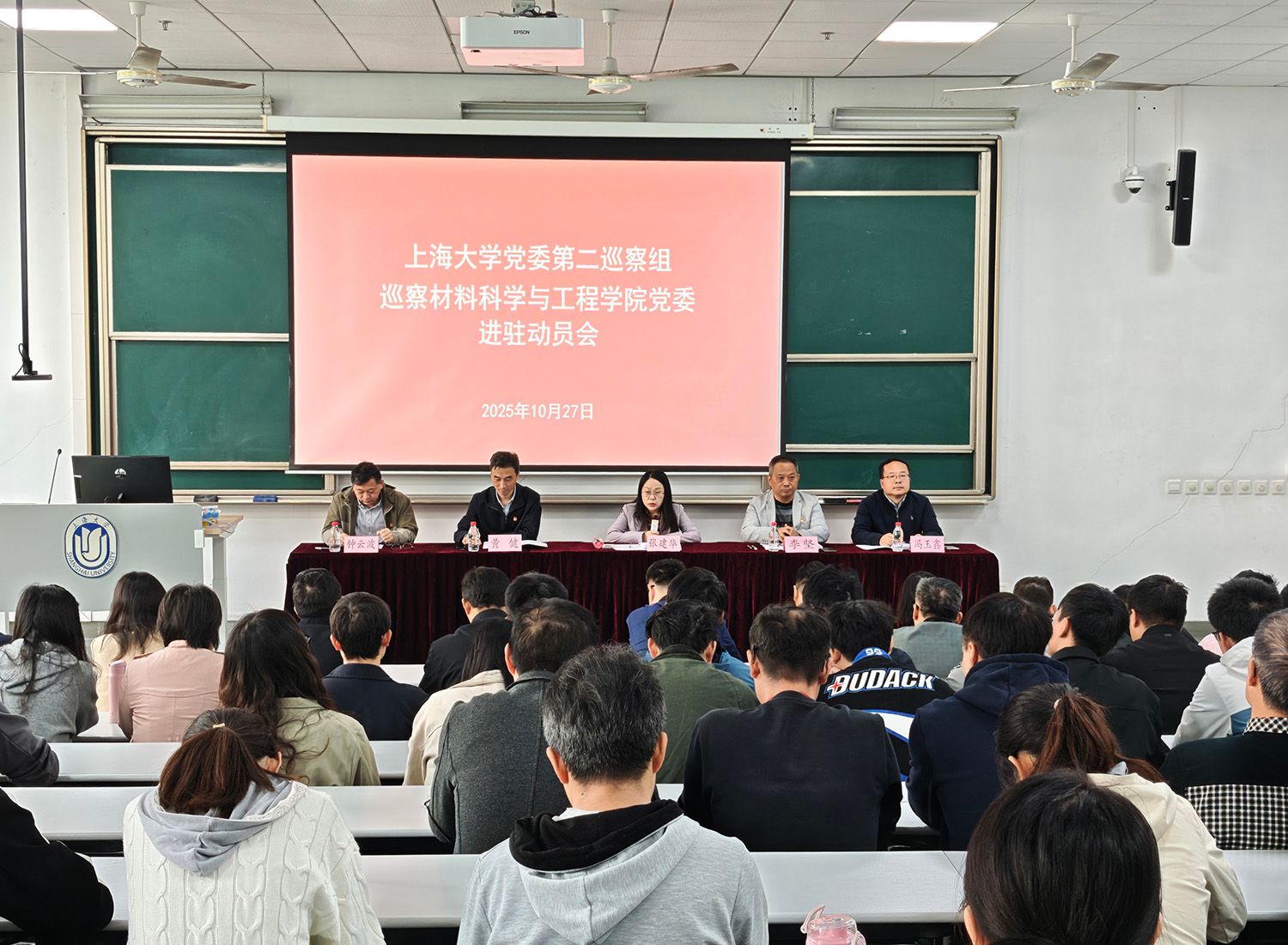 根据校党委统一部署,2025年10月27日上午,校党委第二巡察组巡察材料科学与工程学院党委进驻动员会召开。上海大学副校长张建华、校党委第二巡察组组长李坚、副组长冯玉鑫及巡察组全体成员、巡察办有关同志、材料科学与工程学院党委领导班子成员出席会议。材料科学与工程学院领导班子成员、党支部书记、系(所)负责人、学科带头人、党代会代表、教(工)代会代表、工青妇组织负责人、民主党派代表、教师代表、学生代表列席会议。材料科学与工程学院党委书记黄健主持会议。