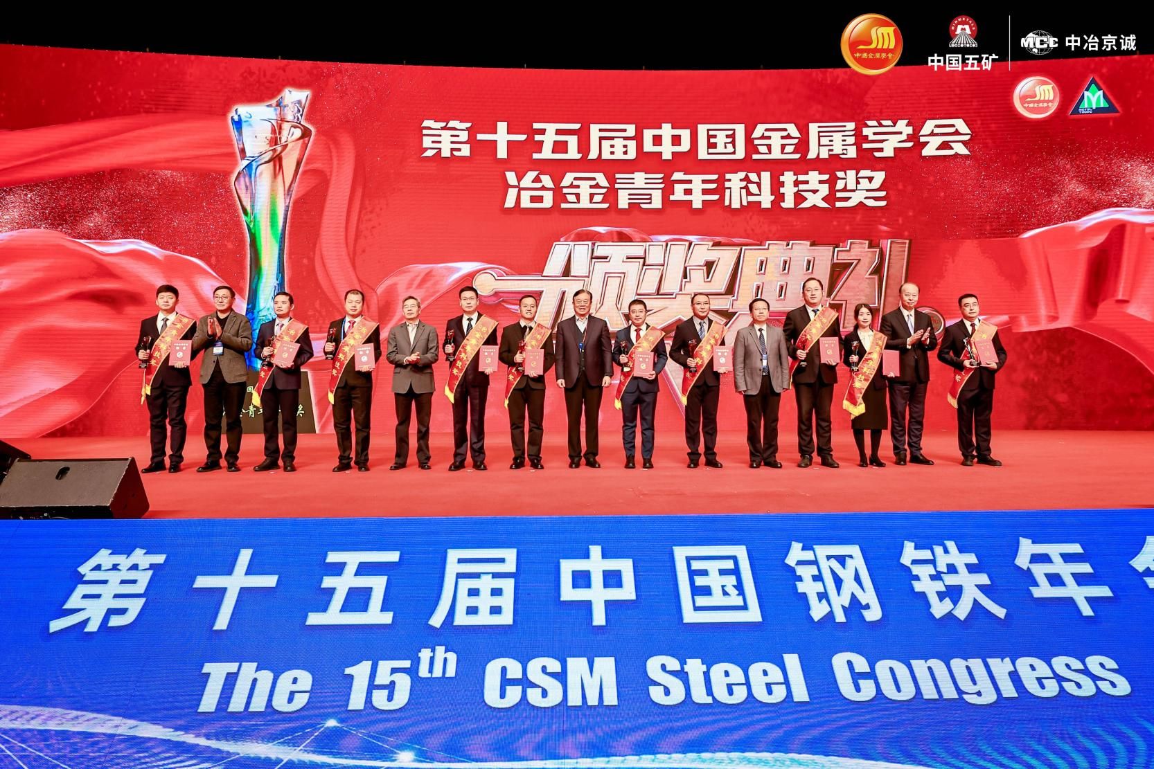 2025年10月23日上午,第十五届中国金属学会冶金青年科技奖颁奖典礼在中国钢铁年会开幕式期间隆重举行。中国金属学会理事长张晓刚、干勇院士、谢建新院士、唐立新院士、张福成院士等著名专家为获奖者颁奖并提出勉励。