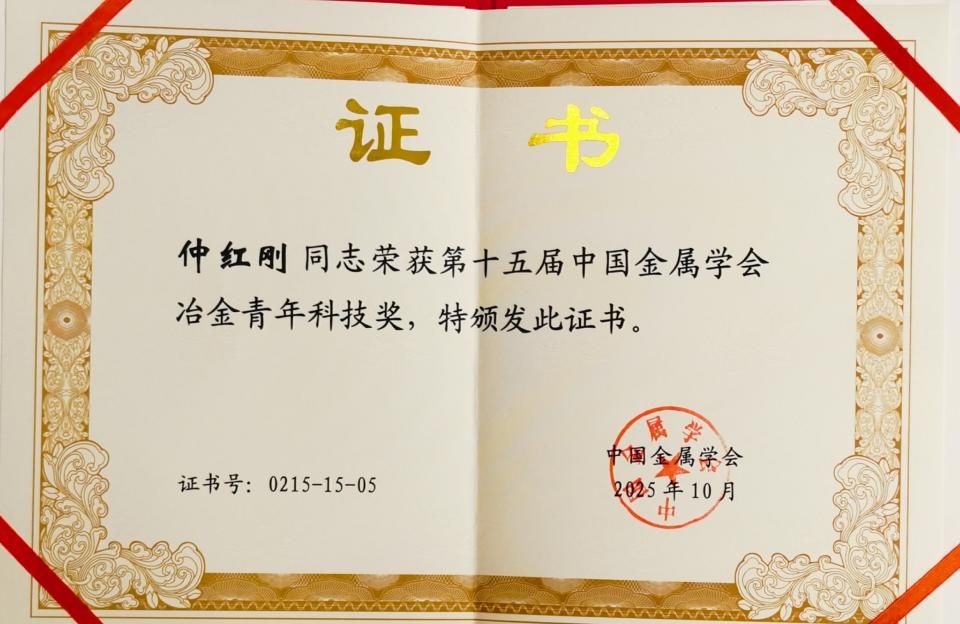 先进凝固技术中心(CAST)热模拟技术负责人仲红刚,因其在冶金凝固实验研究领域做出的突出贡献,荣获该奖项,。