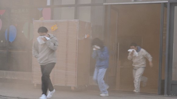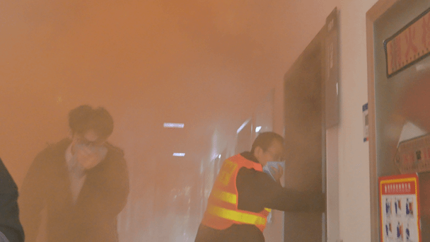 随着急促的消防警铃划破校园宁静,演练正式拉开帷幕。各楼栋消防疏散引导员老师们迅速就位,一边挥舞荧光棒划定疏散通道,一边用清晰的指令引导方向:“低姿弯腰!捂住口鼻!紧跟队伍不要慌!” 学生们严格遵循培训要求,双手紧捂口鼻,身体前倾保持低姿,沿着墙壁有序列队,稳步向楼下撤离,全程无拥挤、无喧哗,展现出良好的应急素养。与此同时,各层安全疏散引导员们逐间排查实验室、办公室及公共区域,是否有人员滞留,确保不留任何安全隐患,全力保障疏散工作全覆盖、无死角。