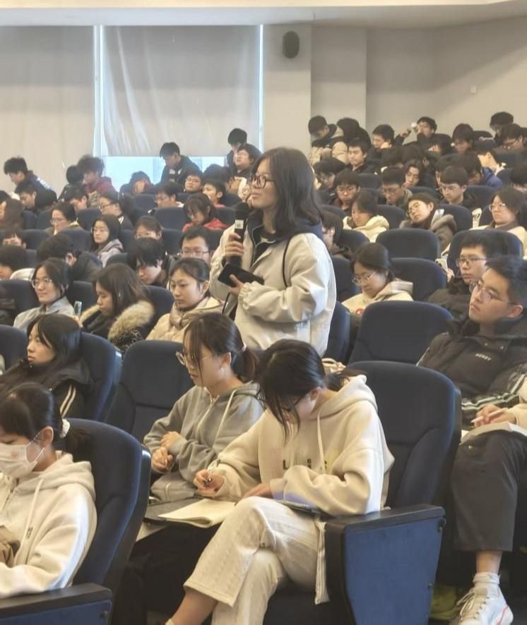 报告环节结束后,现场进入互动答疑与交流环节。同学们踊跃举手,围绕“大一如何平衡专业学习与兴趣培养”、“材料专业不同研究方向的职业前景差异”、“如何在早期积累竞争力优势”等问题向两位老师请教。朱赤红老师和祝楠轩老师结合自身经验与行业洞察,耐心细致地逐一解答,现场交流氛围热烈融洽。部分同学还在会后主动与老师深入沟通,进一步明确个人发展思路。