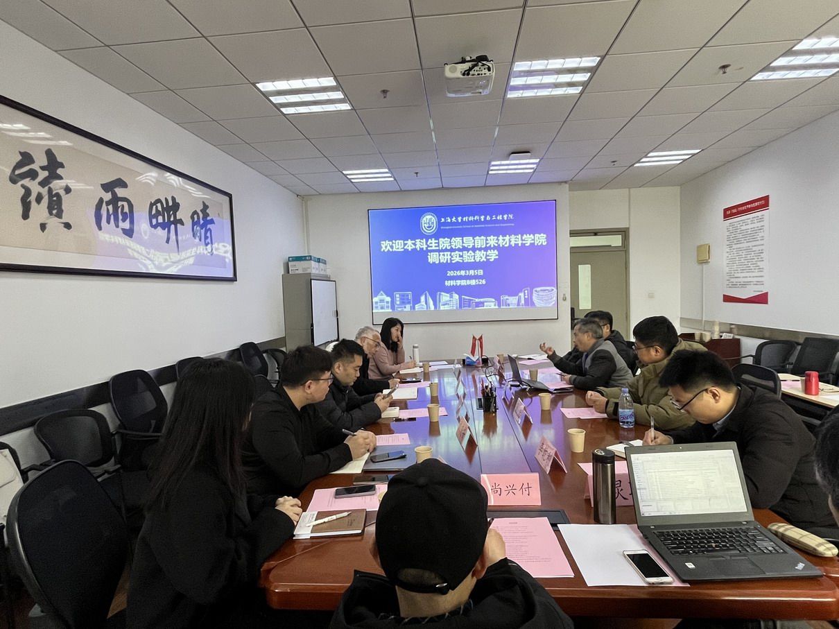 为进一步提升我校本科实验教学水平,优化资源配置,推动实验实践教学高质量发展,2026年3月5日上午,本科生院副院长、实验实践处处长辛明军带队赴材料学院,围绕本科实验教学工作开展专题调研。会议在宝山校区东区材料B楼526会议室举行,材料学院副院长王武荣及实验中心相关负责人、教师代表共同参会。