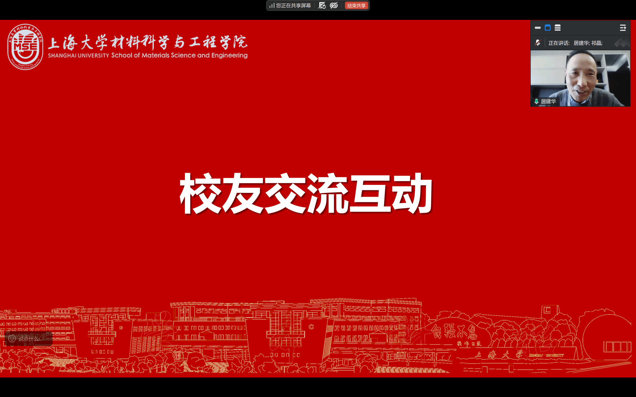 材料学院党委书记黄健向参会校友表示欢迎,黄书记指出擘画“十五五”蓝图材料人使命在肩。希望以此次沙龙为契机,凝聚共识、汇聚力量,传承材料人坚韧不拔、勇于创新的精神,携手并肩、同心同德,共同推动学院“十五五”规划落地生根,共同培育更多优秀材料人才,共同为国家材料产业发展、为上海科创中心建设、为母校建设世界一流大学贡献材料力量。