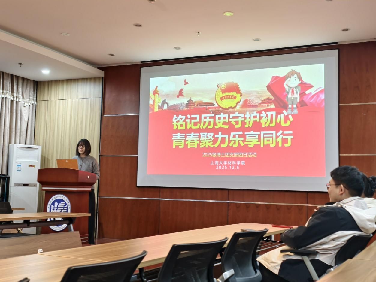 为增强团员青年的历史使命感与责任感,弘扬爱国主义精神,丰富校园生活,材料学院2025级博士团支部于2025年12月5日成功举办了以“铭记历史守护初心 青春聚力乐享同行”为主题的团日活动 。本次团日活动内容丰富、形式多样,主要围绕以下几个环节展开:
