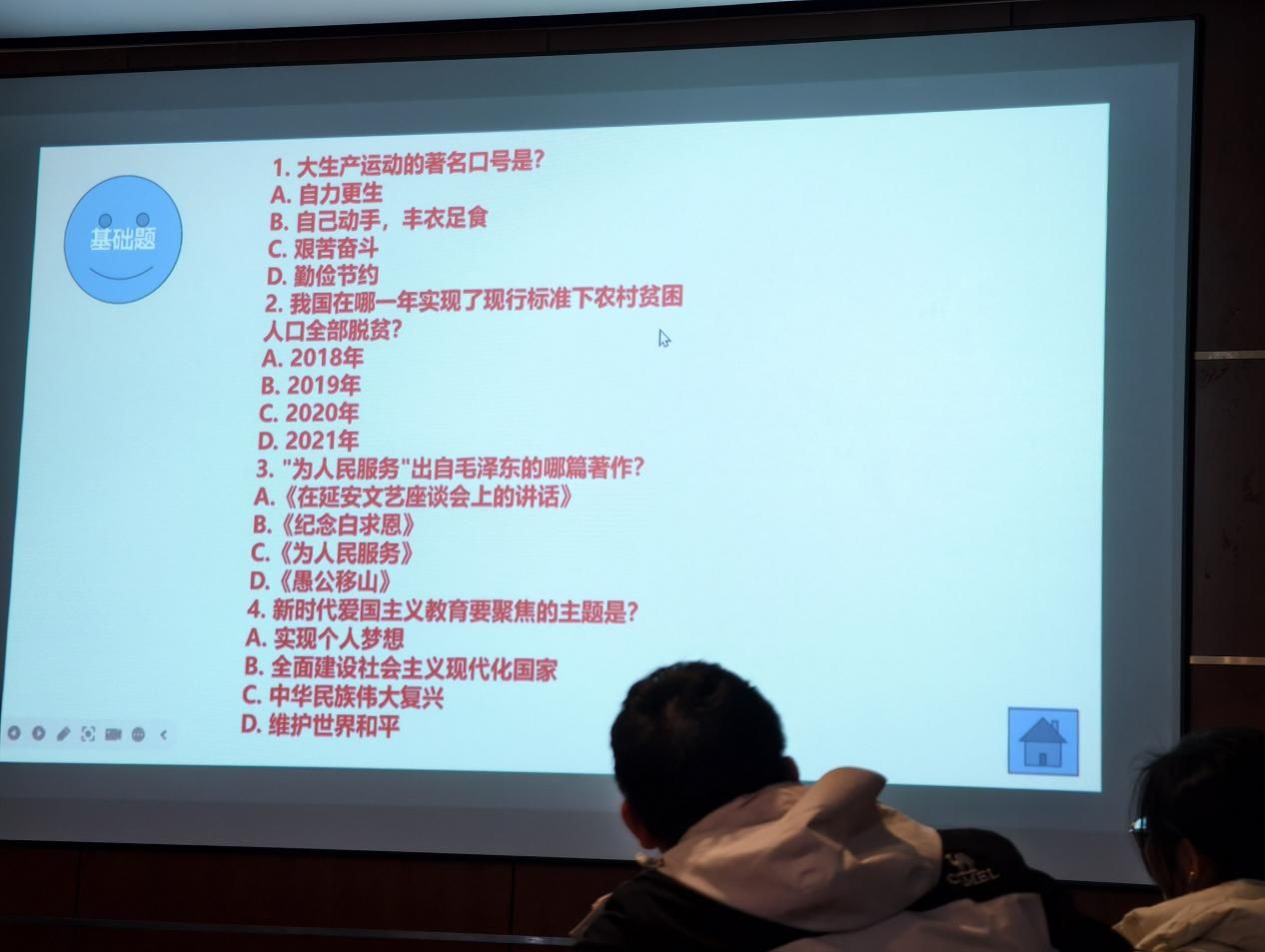随后,团支部开展了知识竞答环节 ,设置了“基础题”和“提高题”两个难度层次,内容涵盖党史、团史、新中国史以及国家重大战略和政策等多个方面 。