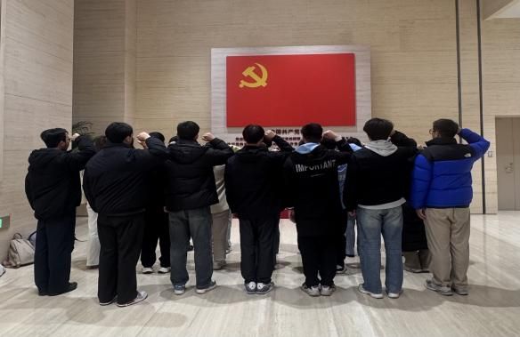 活动尾声,在庄严肃穆的党旗前,支部全体党员在馆内工作人员的引领下,整齐列队,举行了重温入党誓词仪式。面对鲜红的党旗,在支部组织委员的领誓下,同志们庄严举起右拳,铿锵有力的誓言在纪念馆内回荡:“我志愿加入中国共产党……随时准备为党和人民牺牲一切,永不叛党。”这短短八十余字,字字千钧,既是初心使命的再宣示,更是接续奋斗的再出发。对于在场的每一位研究生党员而言,这不仅仅是一次仪式,更是一次深刻的思想洗礼和精神淬炼。