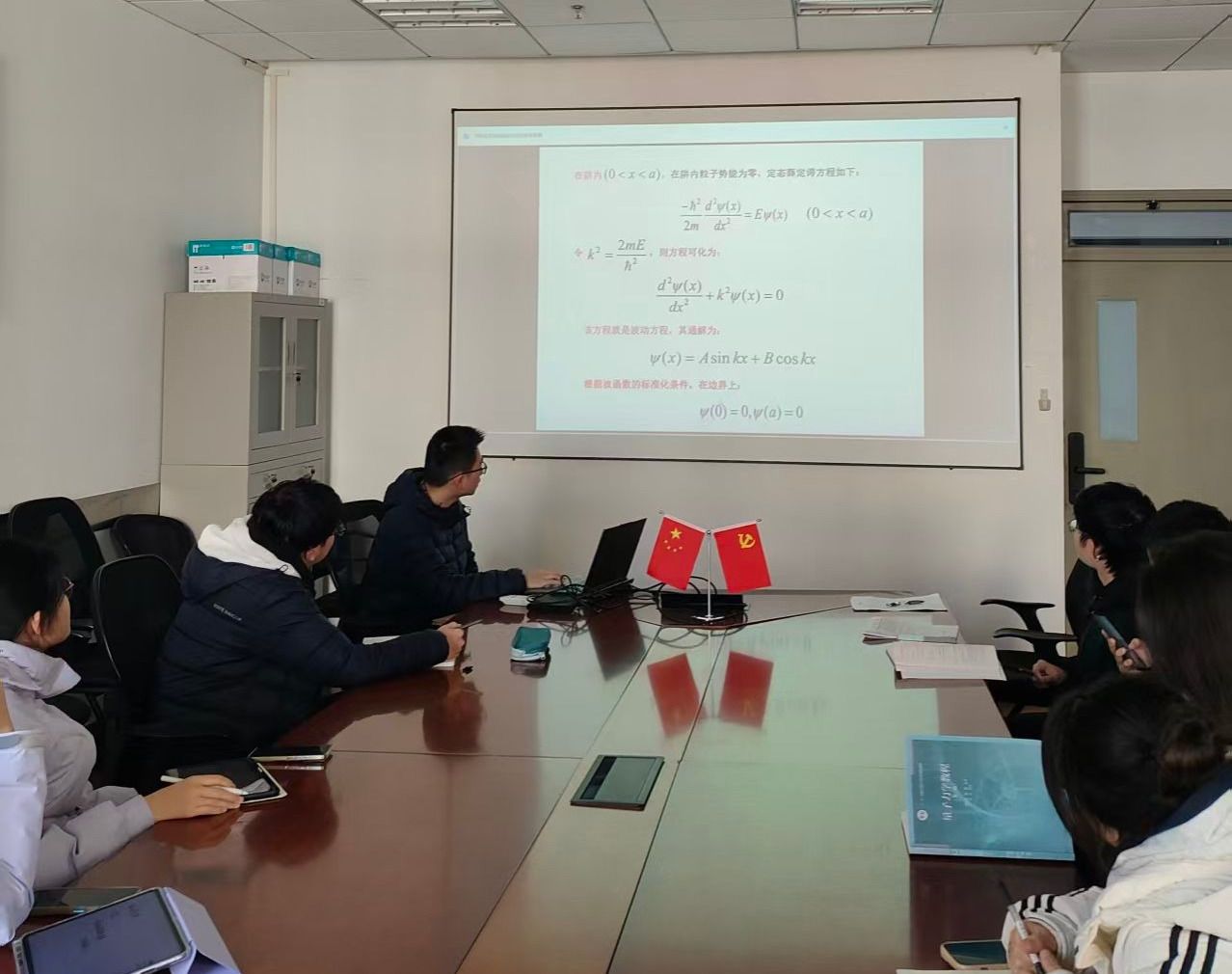 分享课上,首先由陈昊冉同学围绕《量子力学》这门专业课进行经验分享。他从课程核心概念出发,系统讲解了波函数、薛定谔方程、量子态叠加等核心知识点的内在逻辑的关联。针对量子力学理论性强、理解难度高的特点,他鼓励同学们多结合例题深化对理论的理解,避免死记硬背。同时,他还提醒大家关注老师课堂强调的重点内容,合理分配复习时间,提高备考针对性。