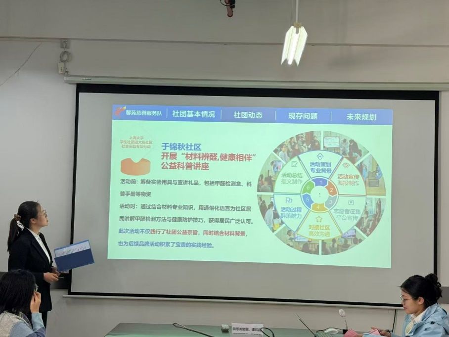 会议首先进入述职报告环节。团委、学生会、本科生党建中心、凡星志愿者服务社、小材人校友寻访团、馨苑慈善义工队、研究生党建中心、研究生会、研究生团总支、师生共享中心、新媒体中心、就业指导中心的负责人依次上台进行述职。各代表围绕思想引领、组织建设、学术科创、文体活动、志愿服务、宣传实践、就业服务等核心工作,以详实的数据、丰富的案例和凝练的思考,全面汇报了上一学年的主要成果、特色亮点与经验反思,并提出了未来的工作规划与展望。每位代表的汇报控制在三分钟内,内容精炼,重点突出,充分展现了材料学院学生骨干队伍务实高效、锐意进取的精神风貌。
