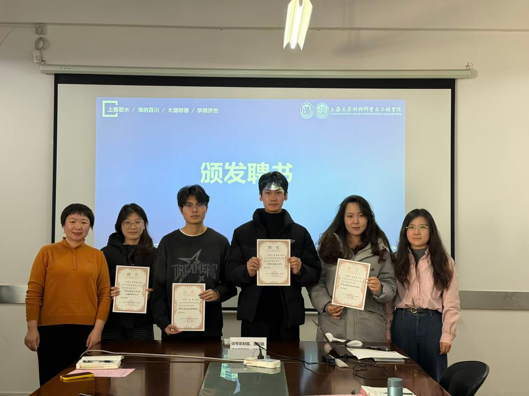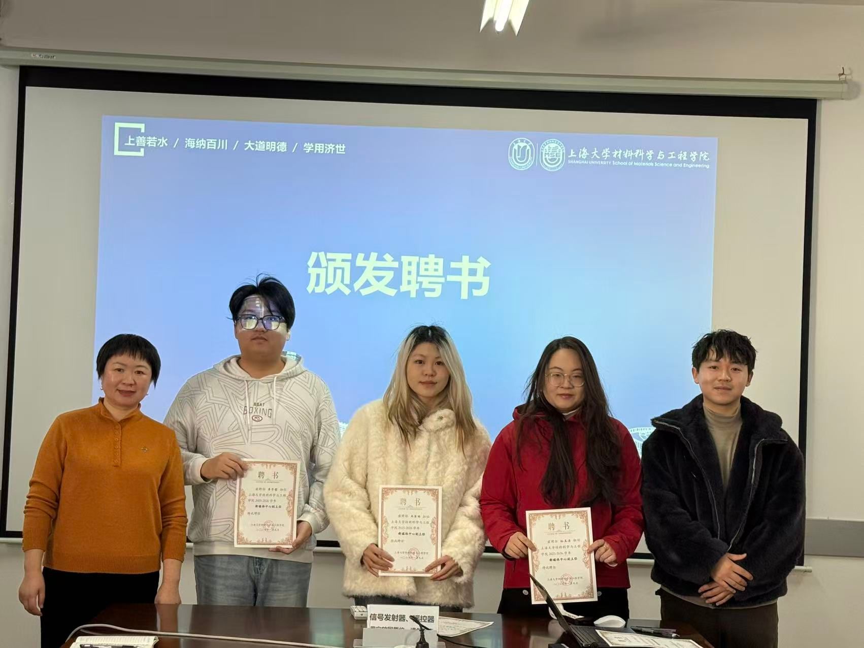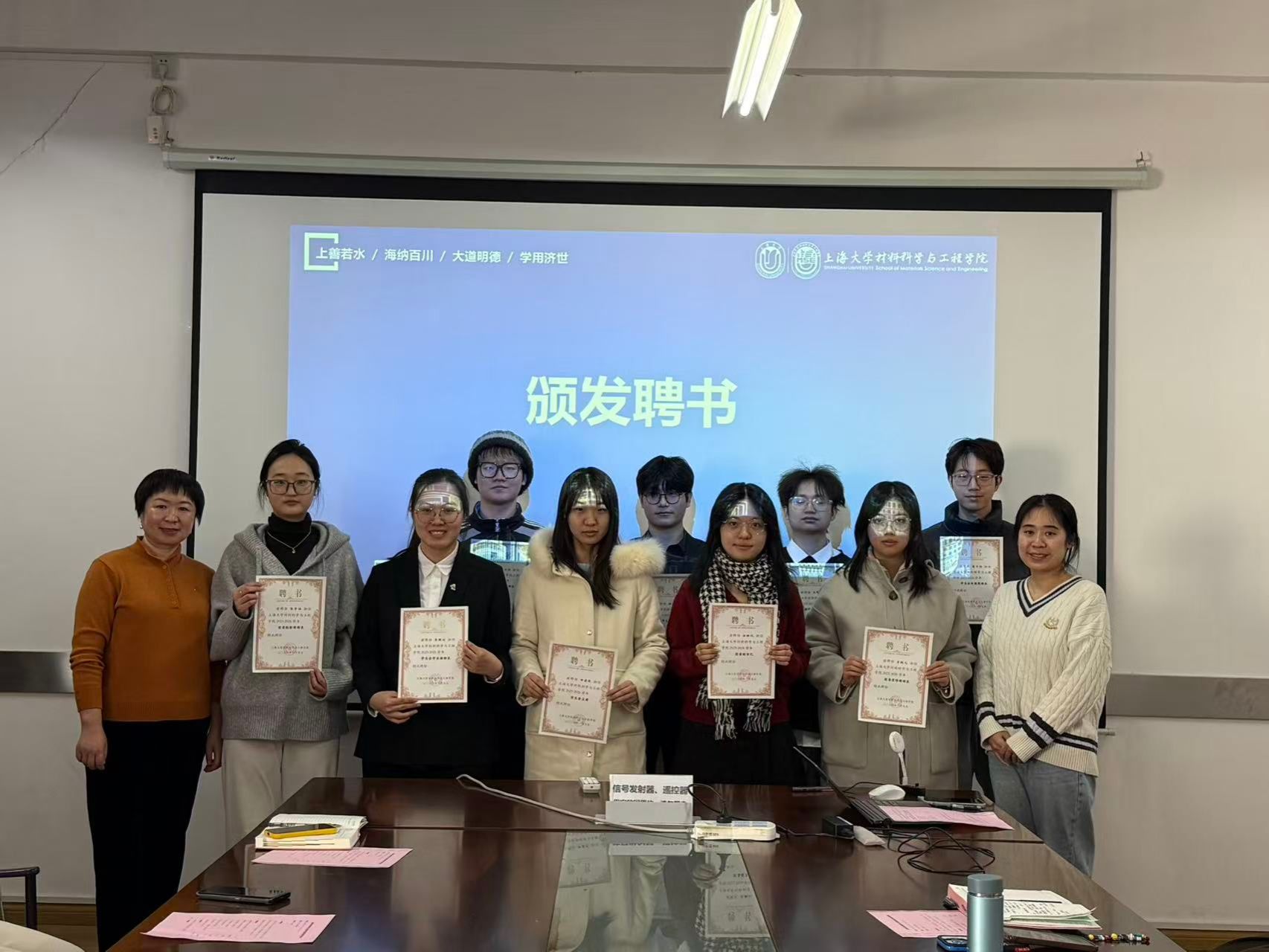 祁晶书记和宋艺老师为研究生团总支成员颁发聘书