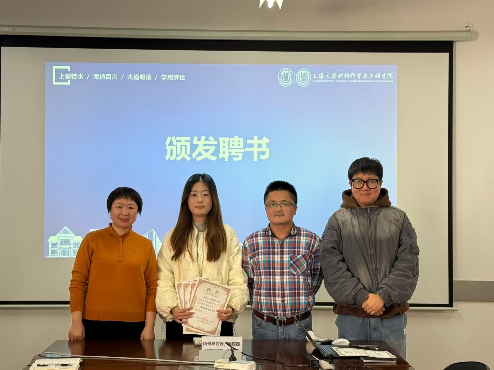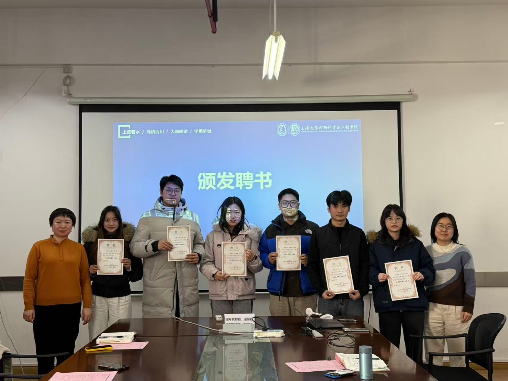 祁晶书记和张舜然老师为师生共享中心成员颁发聘书
